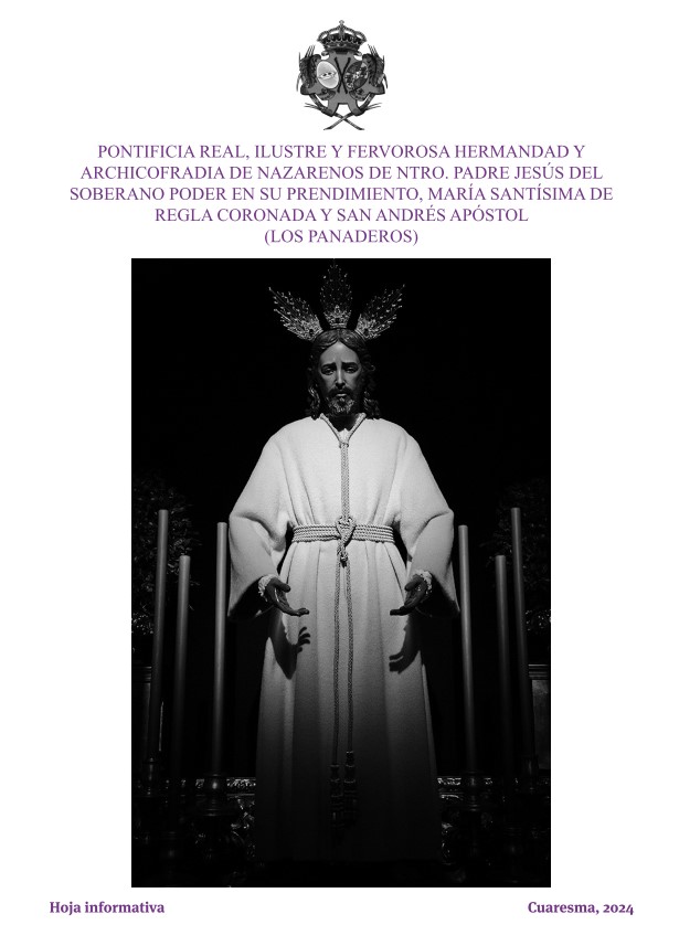 SOLEMNE QUINARIO en honor y gloria de Nuestro Sagrado Titular NUESTRO PADRE JESÚS DEL SOBERANO PODER EN SU PRENDIMIENTO. Tendrá lugar en la iglesia de