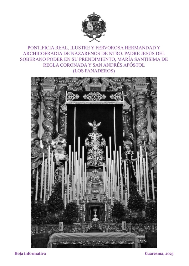 SOLEMNE QUINARIO en honor y gloria de Nuestro Sagrado Titular NUESTRO PADRE JESÚS DEL SOBERANO PODER EN SU PRENDIMIENTO. Tendrá lugar en la iglesia de
